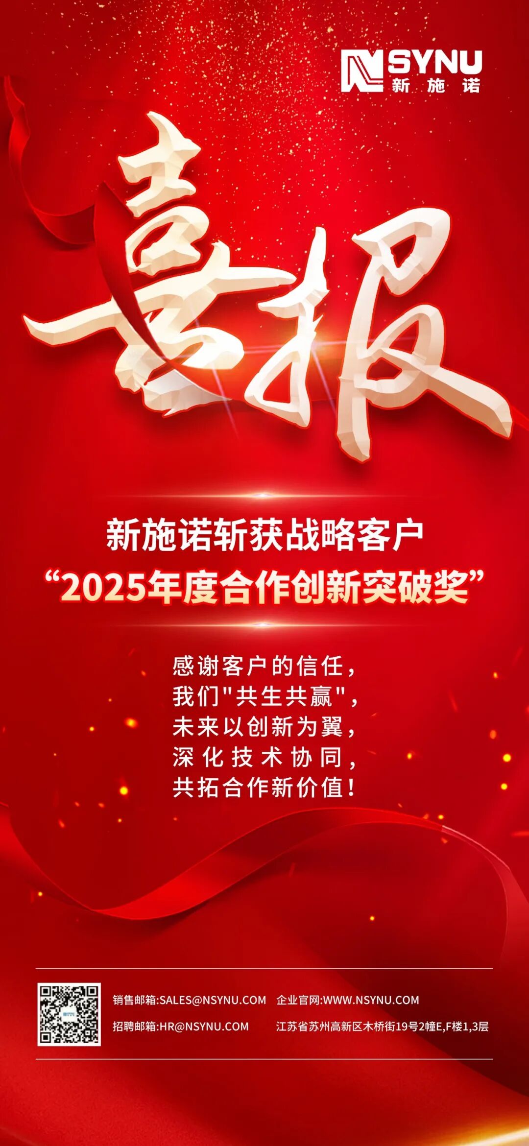 喜报|新施诺斩获战略客户“2025年度合作创新突破奖”