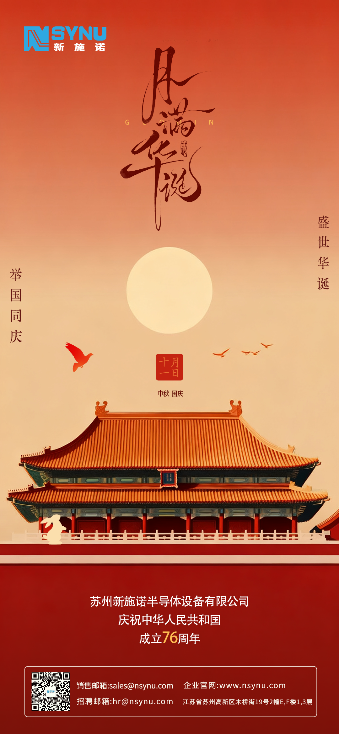 在中华人民共和国成立76周年这一光荣时刻,新施诺谨致敬意与祝福。